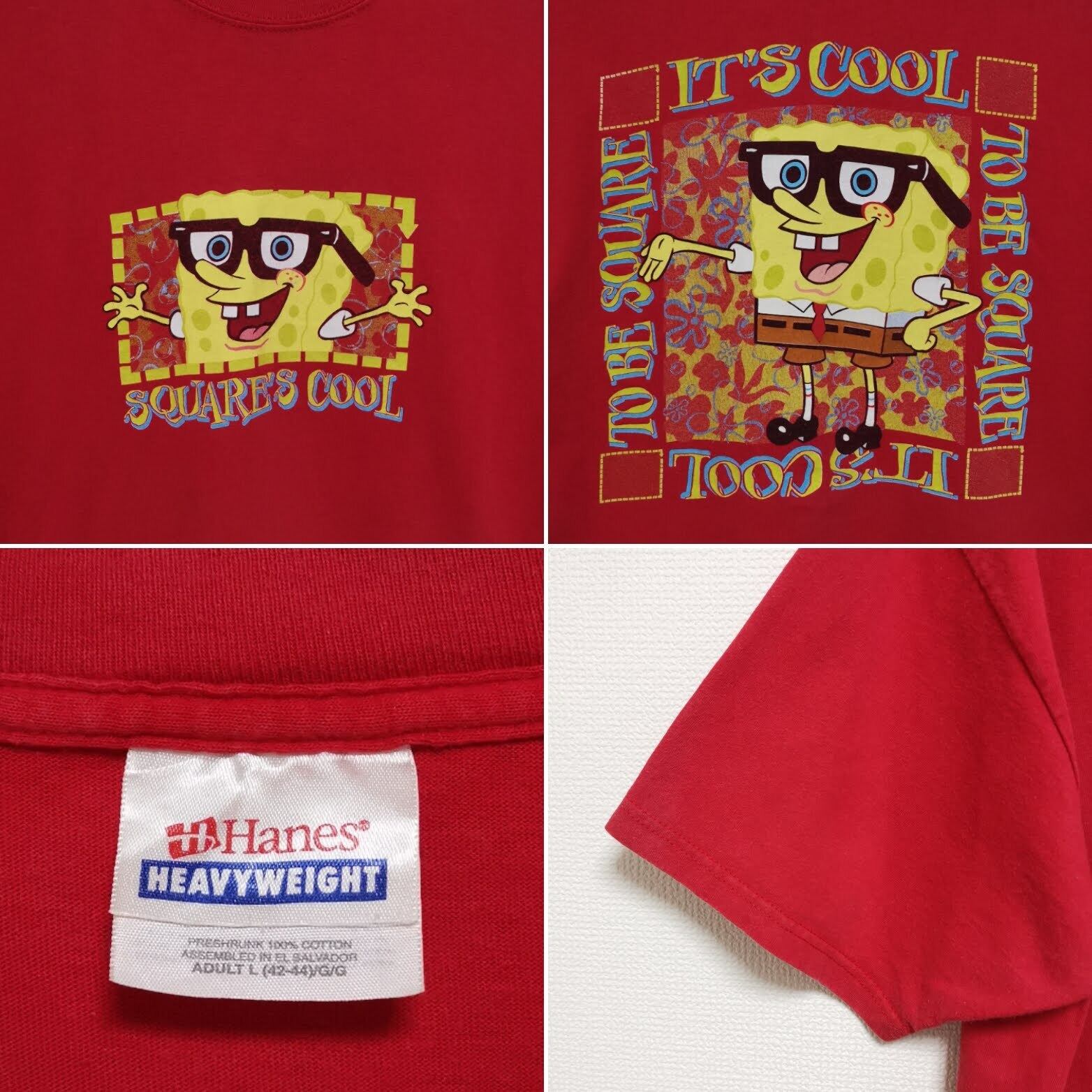 送料無料 L 00s Sponge Bob スポンジボブ Tシャツ Hanes 赤 USA