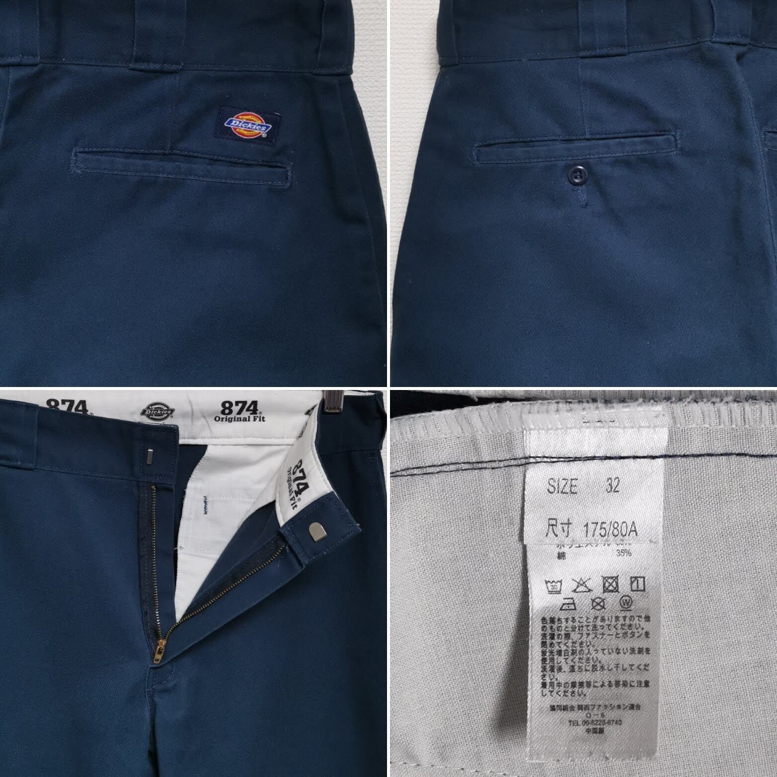【コメント】:2020年頃のDickies874ワークパンツです。CHINA製、人気のネイビーカラーになります。使用感の少ない綺麗なお品です。昔のモノですので一応古着扱いでお願いします。