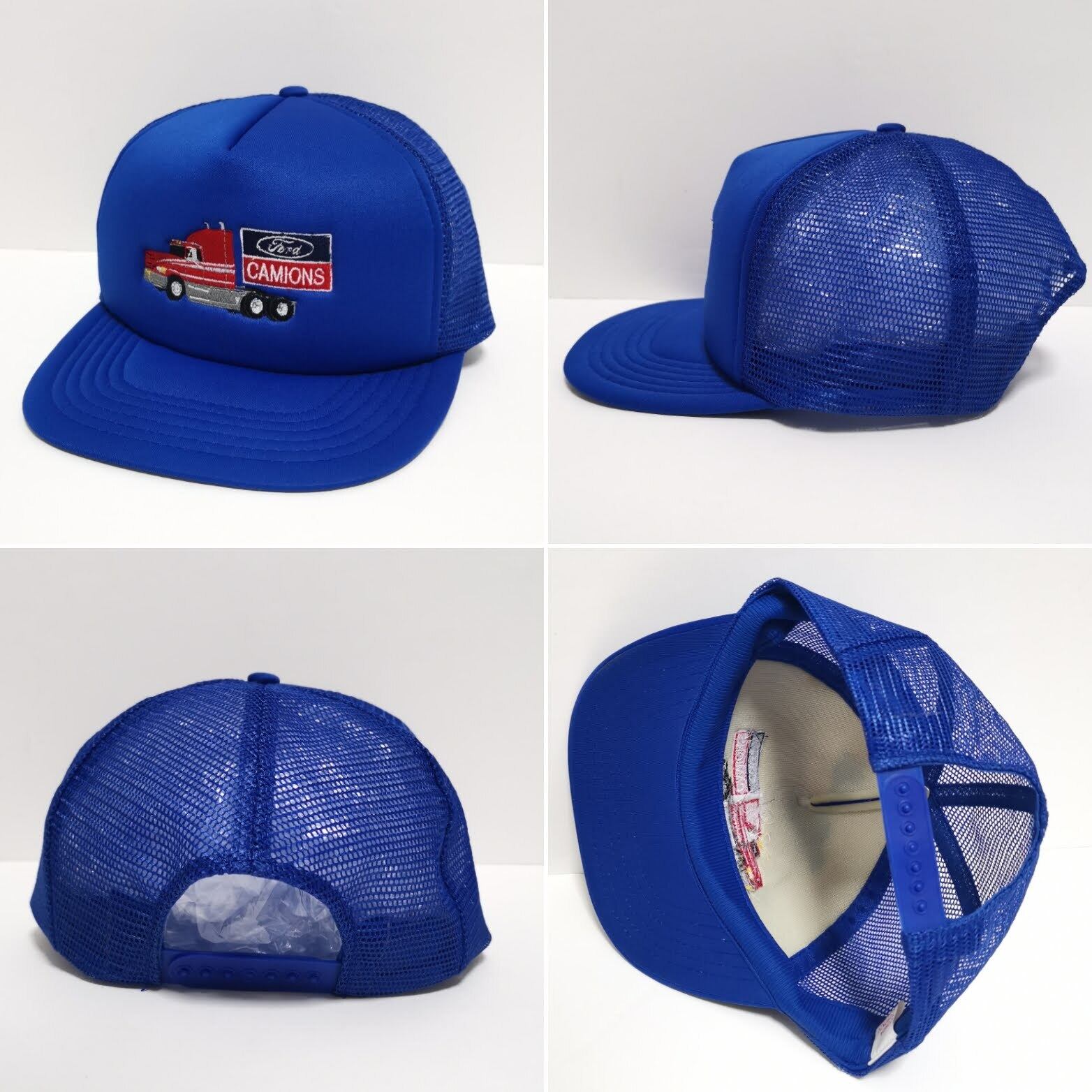 【コメント】:90年代のFordトラッカーメッシュキャップです。CHINA製、オフィシャルタグ、希少なトラック刺繍ロゴのブルーカラーになります。使用感の無い綺麗なお品です。昔のモノですので一応古着扱いでお願いします。