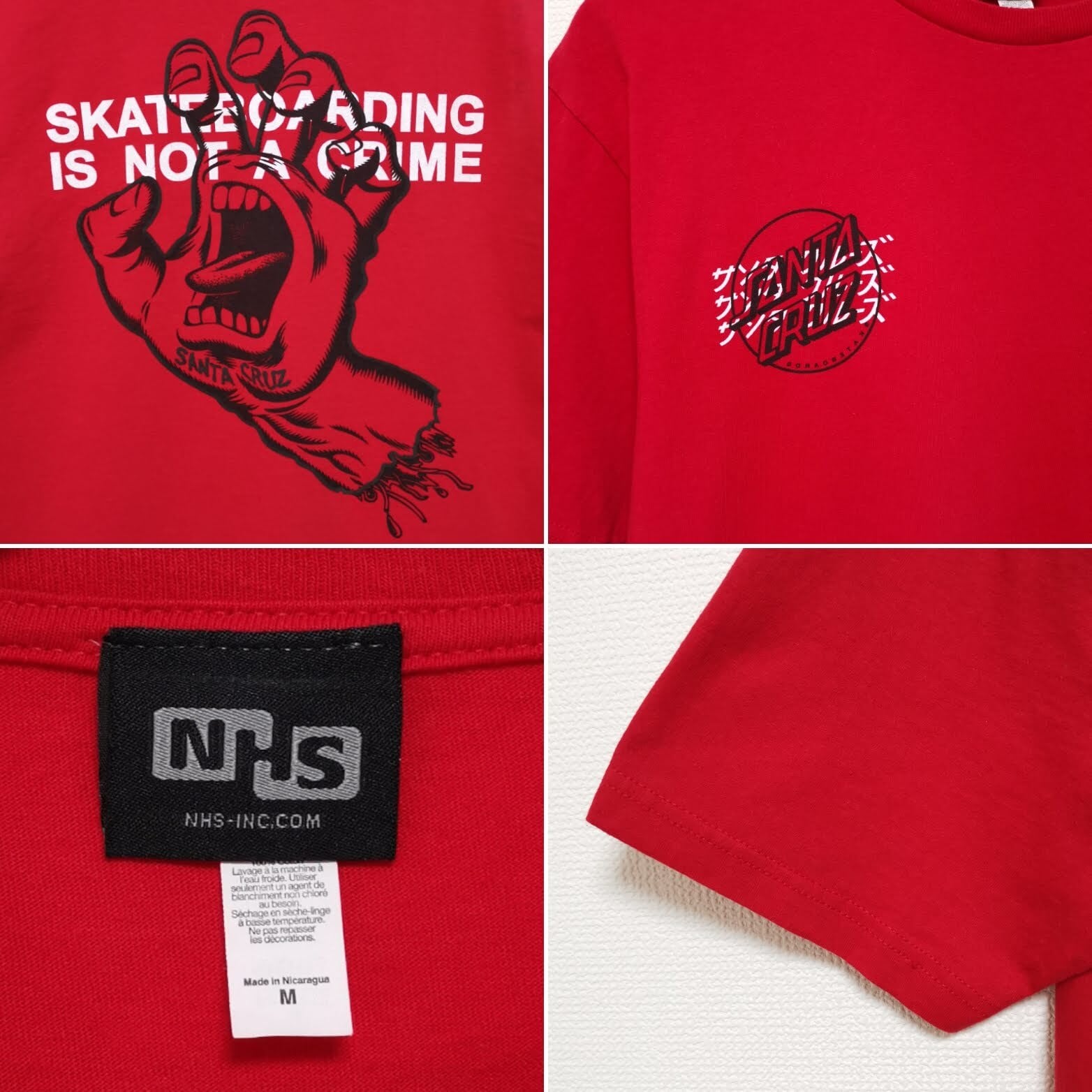 送料無料 M SANTA CRUZ Tシャツ スクリーミングハンド NHS 赤 USA