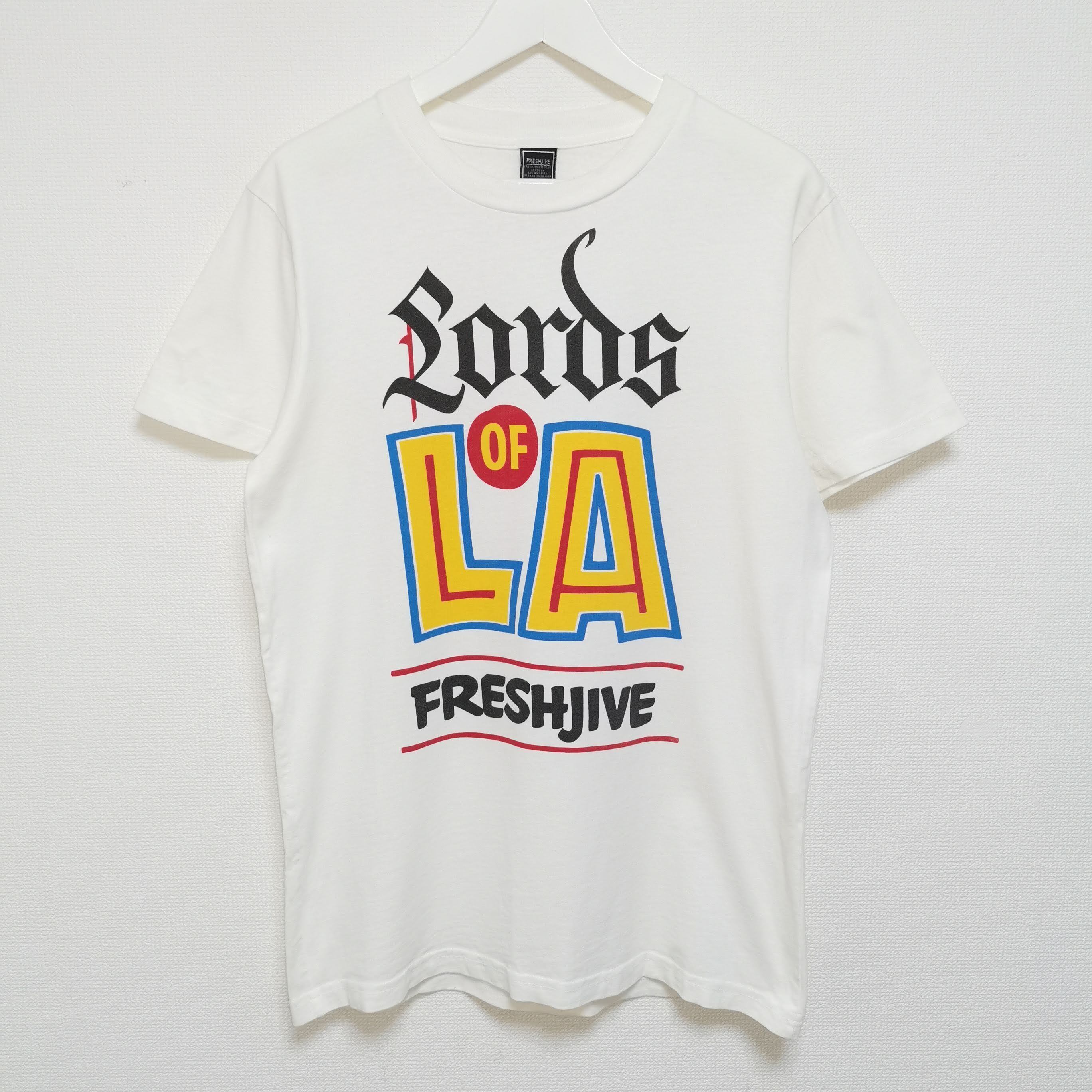 【コメント】:2000年代のFRESHJIVE Tシャツです。USA製、希少な「Lords Of LA」のホワイトカラーになります。羽毛立ちも少なくコンディション良いお品です。昔のモノですので一応古着扱いでお願いします。