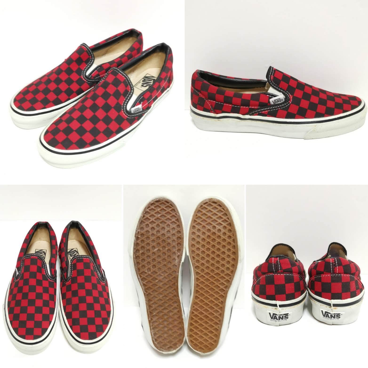 送料無料 26㎝ 90s VANS SLIP-ON スリッポン 黒赤 US8 USA製